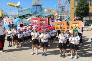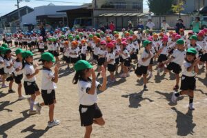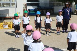 運動会の全体練習が今日からはじまりました。開会式で行う体操や応援などをした後は、年長さんがリレーの練習もしました。年少・年中さんは、見学して「がんばれ~」の声援を送っていました。(★動画はインスタで★保育の見える化★)