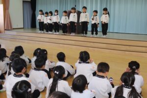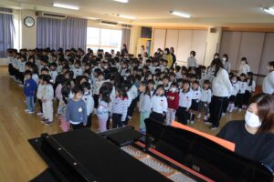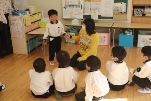あけましておめでとうございます。3学期の始まりです。始業式を行いました。各クラスの代表が冬休み、楽しかったことを発表しました。「イルミネーションがきれいだった」「遊園地が楽しかった」「クリスマスパーティでみんなでご飯を食べたこと」「雪だるまをつくった」。始業式が終わってからは、各クラスで、一人一人が発表していました。(お子さんは、何を発表したのでしょう。)みんな、楽しい冬休みを過ごしたようです。
