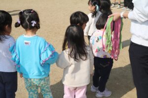 今日は気温も高く、太陽さんさんで、年少さんがしっぽ取りをしていました。みんな、元気に遊んでいます。(★動画はインスタで★保育の見える化★)