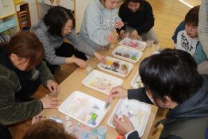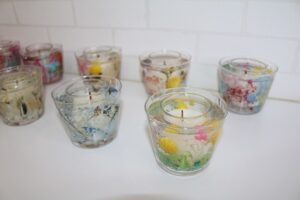 長年行われてきた保護者の手芸サークルは、今日が最終回となりました。今までお世話いただいた方、参加された方、お疲れさまでした。ありがとうございました。今日は、お好みの花を選んで飾り付けるフラワーキャンドルをつくりました。とても素敵な作品が完成しました。
