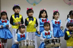 年中さんの発表会がありました。3クラスが2グループに分かれて(2部制)、プログラムは鍵盤ハーモニカ3曲、英語の歌1曲、合奏2曲でした。「If You’re Happy and You Know It」(幸せなら手をたたこう)は、英語をよく覚えていました。(★動画はインスタで★保育の見える化★)