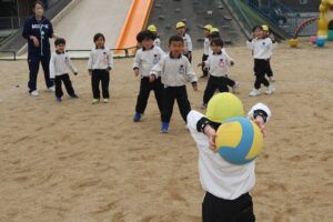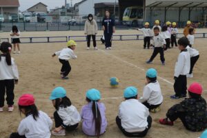 2026.02.16 ドッジボールの講習会?(2/16) 年中さんも自由遊びのとき、ドッジボールをしていた子もいましたが、今日はあらためて講習会?(ルールと遊び方)がありました。「みんなで、元気にドッジポールをしよう!」 一覧にもどる