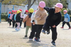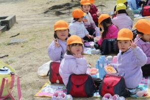年少さんが遠足で三津浜の大可賀公園に行きました(プレ年少さんもいっしょ)。滑り台やブランコなどの遊具で遊んでから、お弁当・おやつタイム。その後は、長縄を跳んだり、ケンケンパーをしたりして遊びました。(インスタ投稿はもう少しお待ちください★動画はインスタで★保育の見える化★)